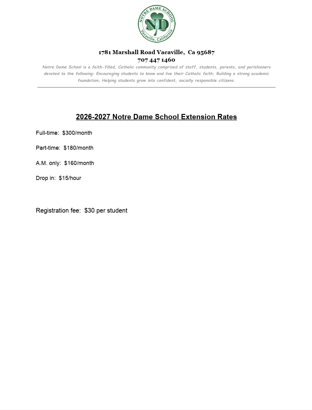 Extension Registration Form and Pricing
